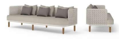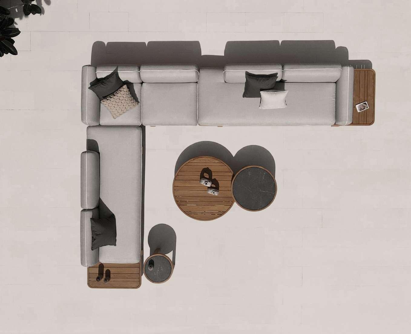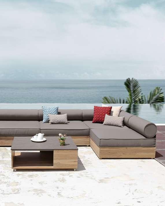The upcycled teak matrix base highlights both naturally occuring, and handcrafted distress marks. The Drift-Look incorporates Original or Espresso finishing, and is assembled using traditional box-joints, crafted specifically for robust performance. Stunning Italian High Pressure Laminate (HPL) forms the back of the base, offered in either Alpes White or Slate. Upholstery is from the high density, easy maintenance Sailcloth fabric range, manufactured by best-in-class outdoor textile specialists, Sunbrella: choose from Shadow, Sailor or Seagull Grey. The signature collection feature is a gorgeously thick bolster, providing optimal ergonomic support, and facilitating ultimate comfort in informal lounging.