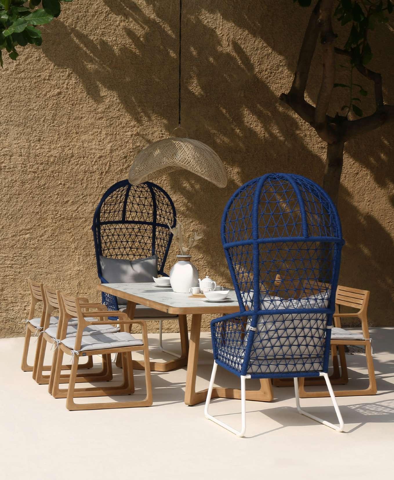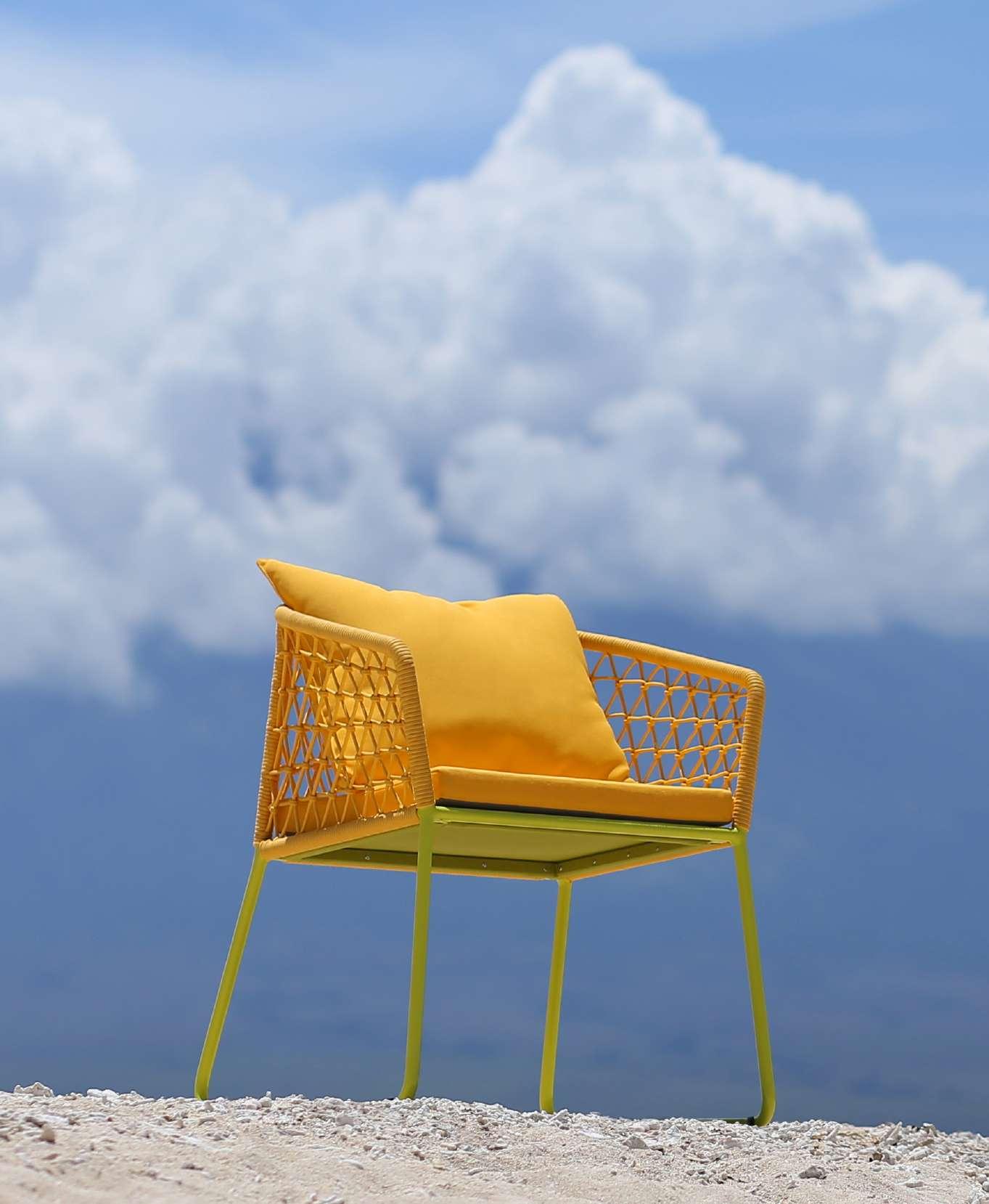 MAMAGREEN’s rope is made of olefin, an Oeko-Tex certified synthetic fabric and has high weatherability and anti-mildew capacities. Colors can weather slightly yet remain vibrant for an extended period of time. Ideal to clean stains and spills as soon as possible with a dry cloth. Regular cleaning with soapy lukewarm water, will extend the good looks of the furniture pieces.