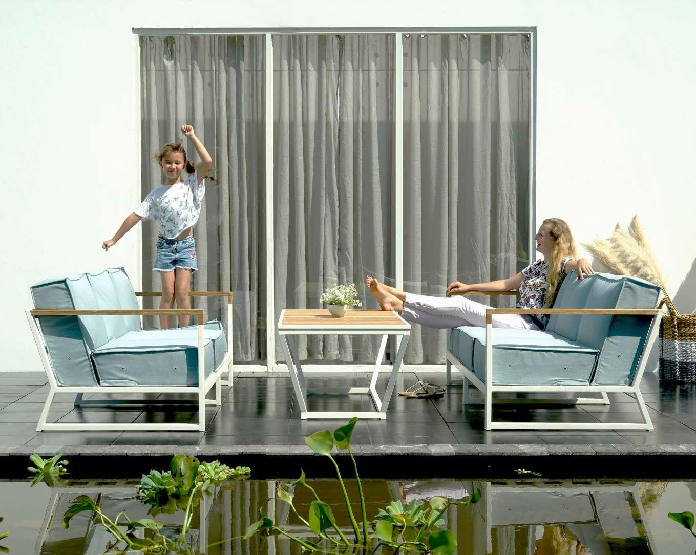 MAMAGREEN furniture is manufactured using a majority recycled or recyclable materials. More than 90% of the teak is carefully sourced from abandoned buildings, with the remainder coming from sustainably harvested teak. Selecting MAMAGREEN is making a conscious choice for style combined with durability.