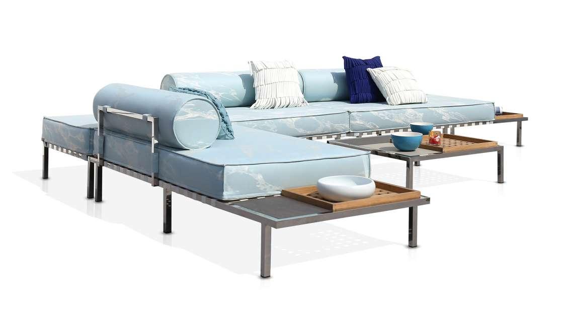 Marine grade 316 stainless steel in a shiny mirror look finish is used in the ALBATROSS Collection, and available for custom projects, such as beach front properties or cruise ships.