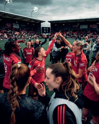 The expressions on the faces tell the story, as players and fans come together to celebrate a momentous, edge-of-your-seat semi-final win here in Leigh one week ago. Chelsea’s recent record in the Women’s FA Cup – they’ve lifted the trophy in each of the past three seasons – alongside our hitherto winless run against them (D1 L10) placed Emma Hayes’s Blues as favourites to progress to the 54th final at United’s expense. Yet from the very first minute, as Lucia Garcia headed home after 40 seconds, the Reds showed immense spirit in every position to see us over the line, with you vocal supporters behind the girls every step, kick and tackle of the way. All together now: ‘We’re the famous Man Utd and we’re off to Wembley!’