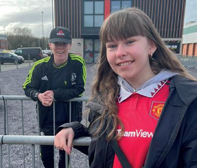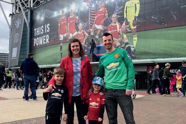← Elliot (7) and Emmeline (5) are at their first United Women game. Dad Pat, Mum Geri and the kids’ Nana (pictured, a lifelong Red!) will also be here. What a family day out that is!