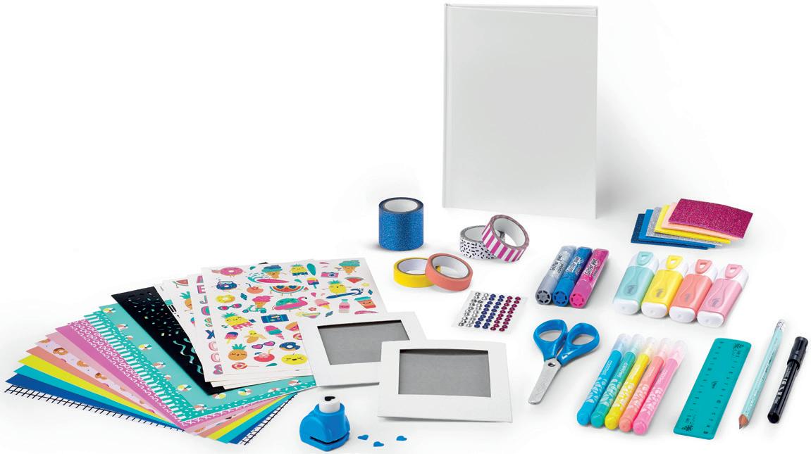 18 pots of paint, 1 Maped Aqua black pencil, 1 Maped paintbrush, 1 wooden spatula, 1 sandpaper, 1 manual.