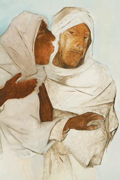 literatures of all three languages as well as the Indian languages he had acquired from childhood in the Punjab and, because of the relocations that India’s Partition and his work imposed, to Mumbai, Madras and – after he opted for full-time painting – New Delhi. In England, during school holidays, he enjoyed the friendship and guidance of Brother Joseph Gardener at Frensham, as one visitor among several other displaced and family-less youngsters. Here his understanding of Christianity took on additional depth, with closer knowledge of the New Testament and of the character of Christian saints such as St Francis, still a favourite. His college took him on repeated visits to the National Gallery in London, where he soon found himself fascinated by Piero della Francesca’s resonantly understated Baptism of Christ, as well as the strong, calm art of Giotto and Uccello, religious and secular, and delivering their messages through strong design and unchallengeable staging. He was back in India in 1942, but spent six months of 1954 in London and Paris and in Central Italy, notably in Rome, Arezzo and Assisi, confirming