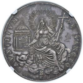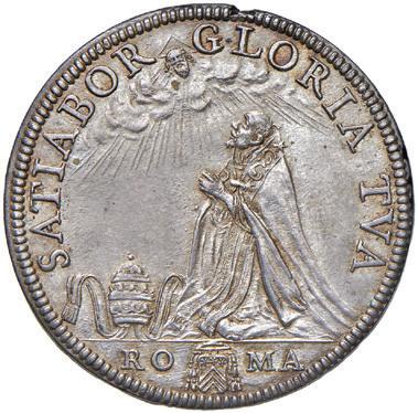 489 Beato Bernardino Da Feltre (1439-1494) Rarissima medaglia da fusione di massimo modulo 1630 Omaggio al Beato Bernardino Tomitano da Feltre, per iniziativa del Consiglio Generale della Città di Pavia e su interessamento del marchese Lorenzo Isimbardi - Opus: G.S.F. (artista pavese soprattutto pittore) - Corriere Ticinese, anno X del 26/27 Febbraio 1894 - AE argentato (g 785 - Ø 143 mm) Medaglia di estrema rarità e reperimento, interessante la vista della città di Pavia con ancora le vecchie mura spagnole. Foro portativo e qualche segno al bordo.