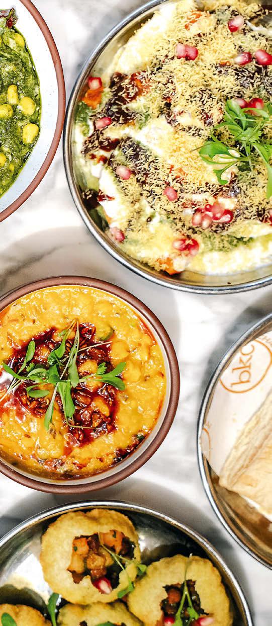 dishes include warming daals, lamb kebabs, garlic chicken with spinach and chicken tikka masala.