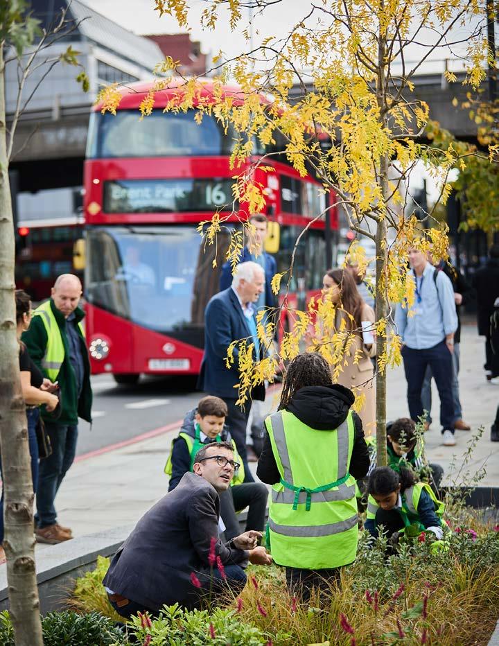Central London’s biggest sustainable urban drainage system (SuDS) was delivered by Transport for London in 2024, creating a network of rain gardens at the former Joe Strummer subway, preventing localised flooding and adding resilience to the district.