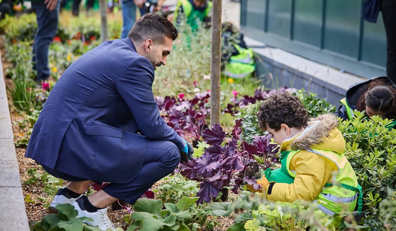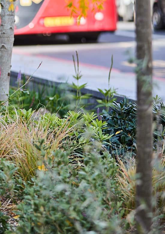 Walking Commissioner and Mete Coban, Deputy Mayor for Environment and Energy. The rain gardens are the largest sustainable urban drainage systems (SuDS) in central London, improving surface drainage and making London more resilient to climate change and flooding, with a rainwater run-off catchment area of approximately 3,500m2. The gardens host 11 new trees, over 1,100 shrubs and plants, and 2,300 bulbs. The BID is funding the ongoing maintenance of the gardens, which will start to flower and add colour to this key gateway in the spring.
