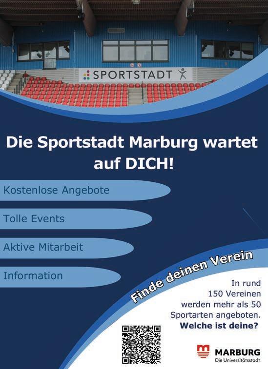 l WENDO-Selbstbehauptung, Selbstverteidigung und Gewaltprävention für Frauen, mehrwöchiger Kurs vom 29. Oktober - 10. Dezember 2025 (immer mittwochs 20:1521:45 Uhr). Weitere Informationen und Anmeldung bei: Wendo Marburg e.V., Tel. 06421-8891609, info @wendo-marburg.de oder www. wendo-marburg.de (gewerbl.)