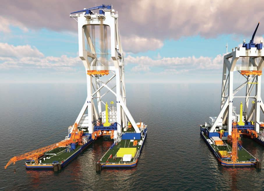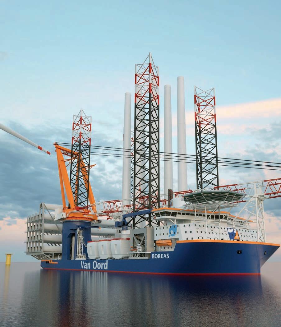 Van Oord’s heavy-lift installation vessel Svanen will receive a major upgrade. Among other improvements, the gantry crane will be extended by 25m, making the vessel ready to handle the next generation of monopile foundations for offshore wind projects. Read more on page 22. Photo courtesy of Van Oord.