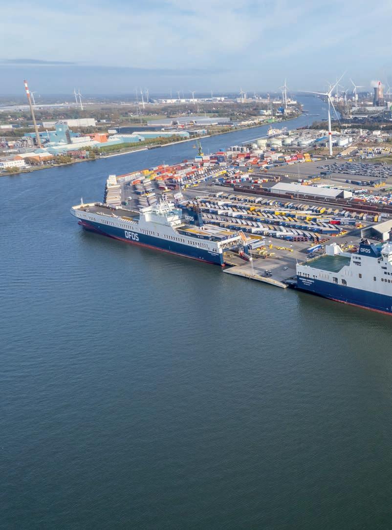 The shipping line plays a pivotal role in the green corridor North Sea Port and Gothenburg are developing between the continent and Scandinavia. DFDS is extending this corridor on the landside by aligning a rapidly growing number of fully-electric trucks. The company has a workforce of 300 employees, which is daily supplemented by 100 port workers on average.