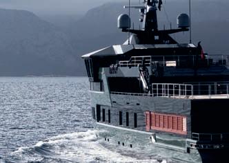 thesalon, dining room, wine storage and board room, covers almost 290m2. The owner’s deck is equipped with an informal lounge and the sky lounge deck with a tness room. The yacht’s pièce de résistance, the spacious spa area, is located on the lower deck of the ship.