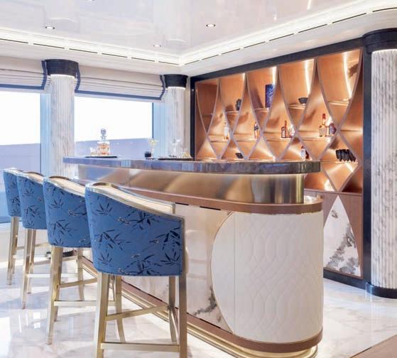It is not just her size, but most of all her stylish exterior and interior design that impress yacht lovers and make this superyacht an exclusive dream home on the high seas. Austrian interior+ out tter List General Contractor (ListGC) was commissioned with the project management of the yacht interior on four decks and a total of 745m2 and furnished the yacht with handcra ed special surfaces and exclusive ttings. In completing this project, the company from Bad Erlach in southern Lower Austria once again highlights its long-standing position as a leading international partner for highly complex interior+ furnishings for luxury yachts and private residences. The largest and most famous yachts in the world already bear the signature of the specialists from ListGC – and now MYAhpo is no exception. The ListGC scope on the main deck, consisting of