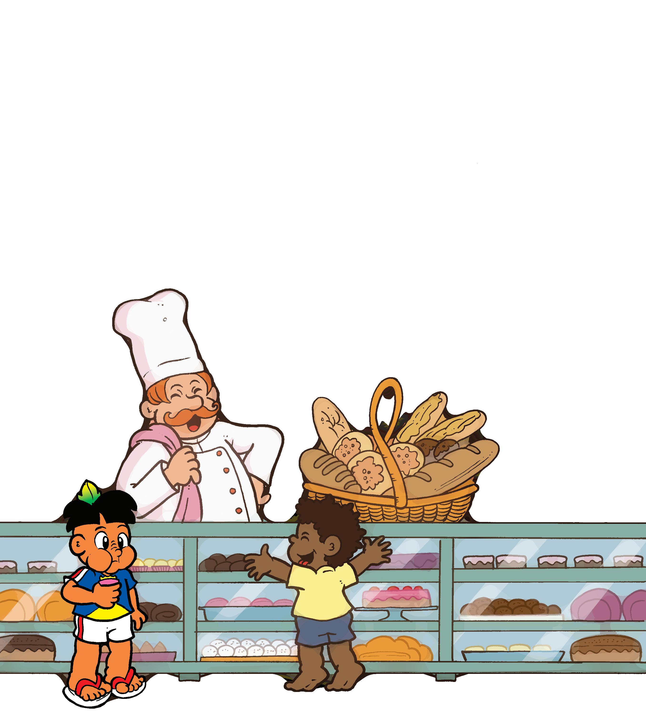 -Hum, que vontade de comer um doce! Vou pedir um sonho para o Seu Real, o dono da Panificadora Real. Pensa num sonho gostoso demais. Aquele recheio... Huummmm.