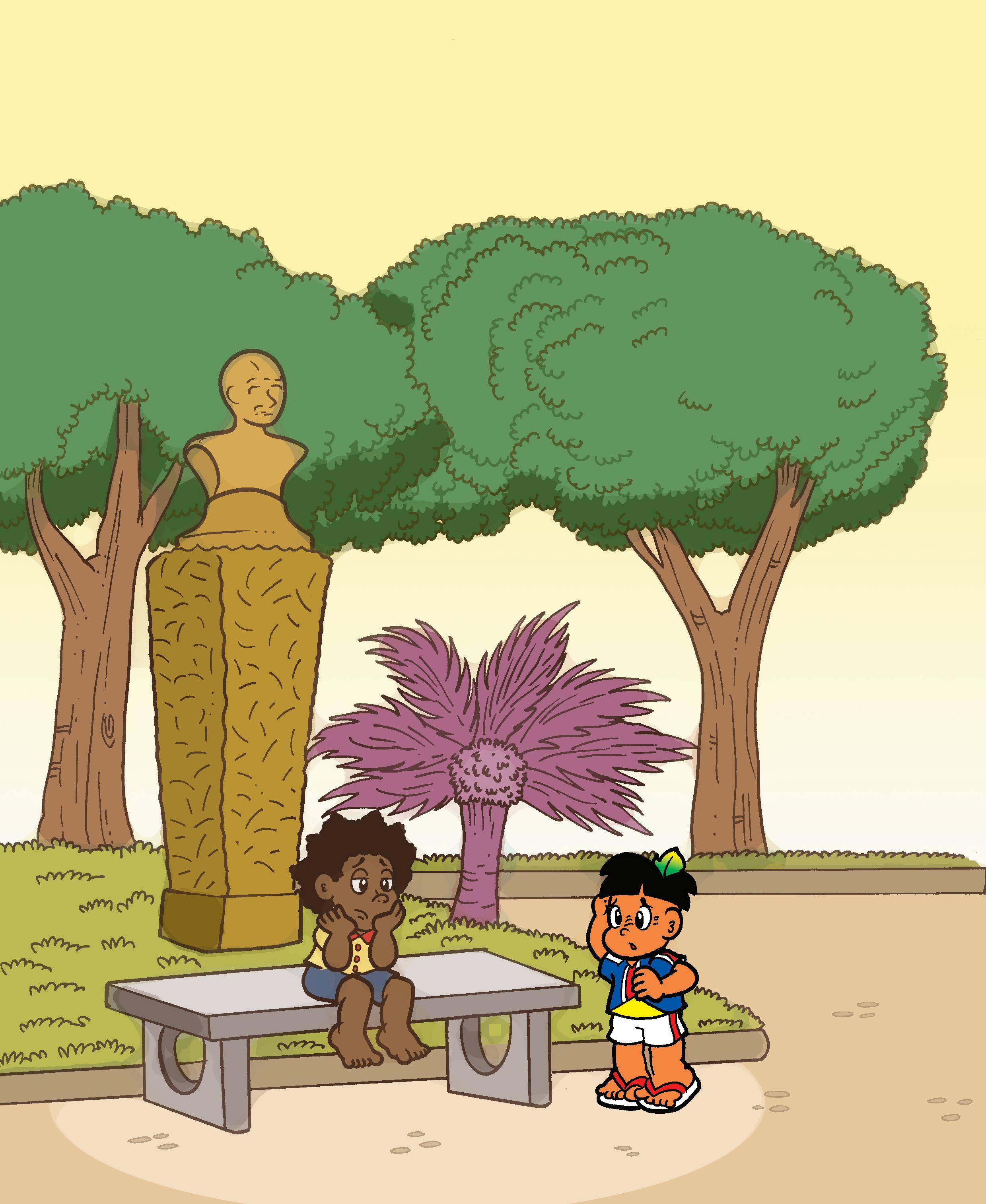 Zezinho saiu pensativo. Percebeu que já estava perto do bosque que tem o nome de um pássaro que canta lindo demais: Uirapuru. De repente, escutou uma voz conhecida. Era aquela menina que já tinha encontrado, por acaso, antes. Ela faz uma carinha de dó e diz: -É o mesmo menininho, que dó ser um menino de rua! Ele é tão bonitinho!