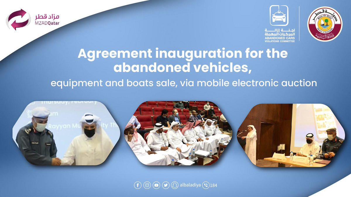 The agreement included a detailed mechanism for cooperation between the the Ministry of Municipality's Department of Mechanical Equipment and Mzad Qatar regarding the sale of abandoned cars and boats as well as mechnical and technical equipment through electronic auction.