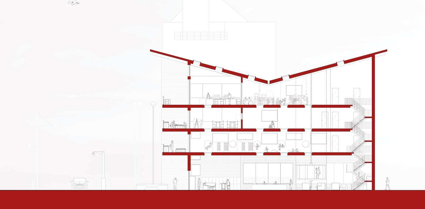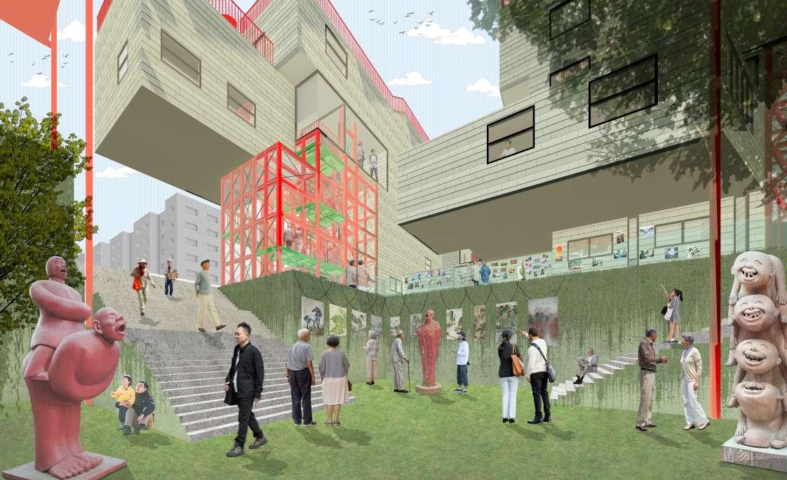 communal walkways, the space becomes one for both artists and the elderly, serving as both work and communal art workshop spaces.