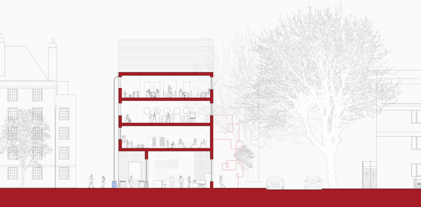 In the second semester of second year, there was a heightened focus on sustainability. The assignment was to design a ‘sustainable practice’ that takes a radical approach through regenerative architecture for Somers Town. This required showcasing innovation in both program and spatial design while adhering to the key principle of material and construction circularity.