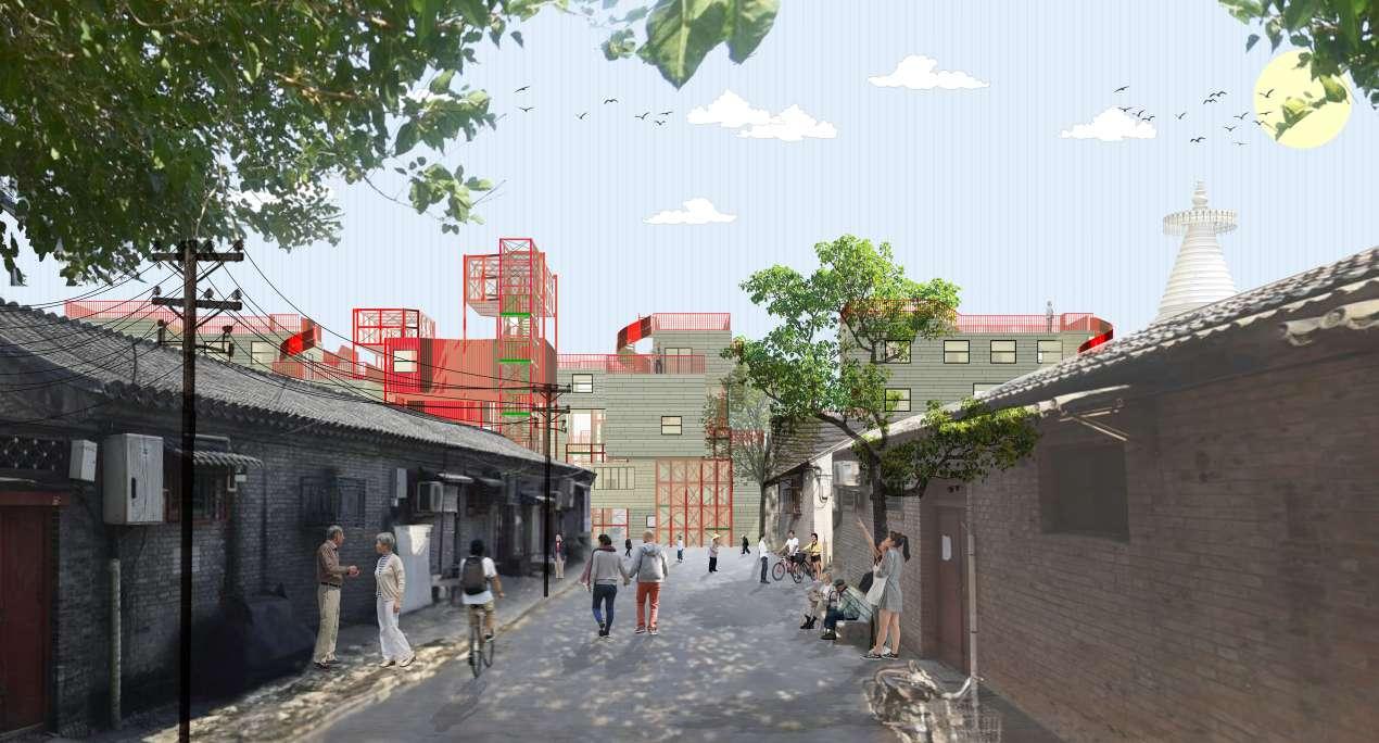 The third-year project is an accumulation of work from semesters one and two. The goal is to provide a multigenerational living scheme for both young aspiring artists and the elderly in Beijing, China. The first semester involved analyzing two case studies, one in London and another in Beijing. These studies were then augmented and amalgamated based on future