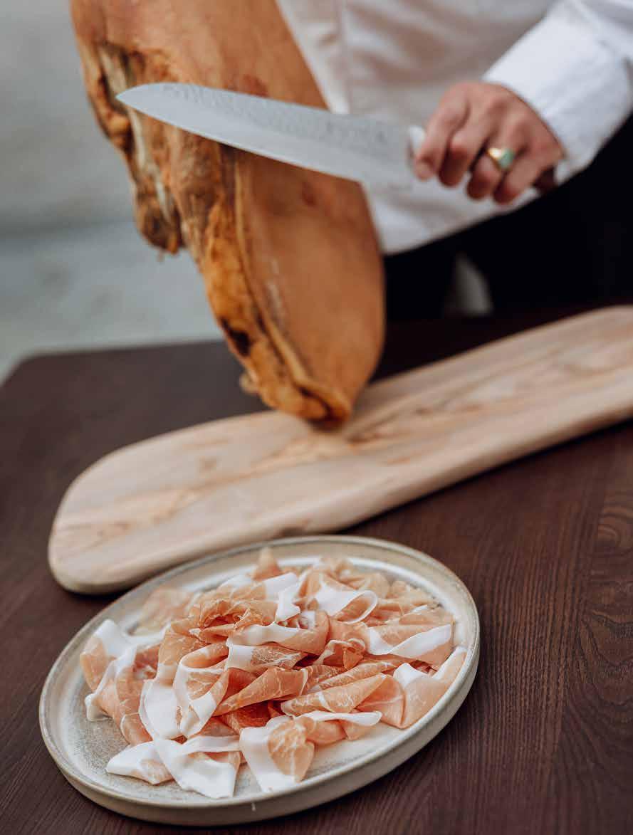 These initiatives are already producing quite a few homegrown delicacies. Restaurant Create receives daily bread from its own bakery, which will eventually expand to serve the entire location. The first smoked hams have already been delivered, as well as jams. The grapevines have been planted and from the castle terrace, you can see a new beautiful garden house where thick logs are neatly stacked for cultivating shiitake mushrooms – a very refined mushroom that both chefs and their guests adore.
