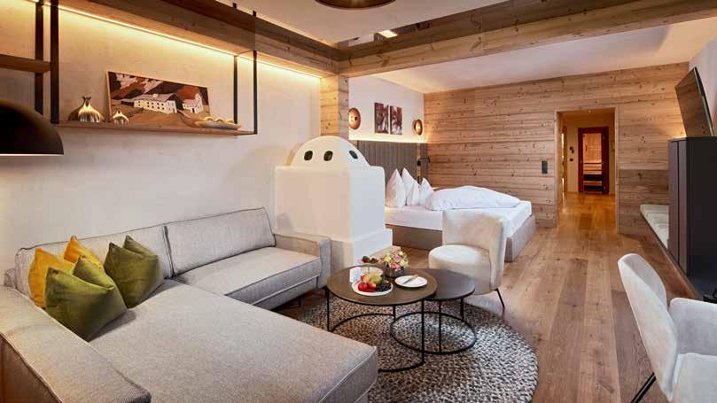 ZUCKERHÜTL romantic junior suite, 50sqm Enjoy sweet moments in this junior suite with rustic stove, seating corner and southwestfacing balcony.