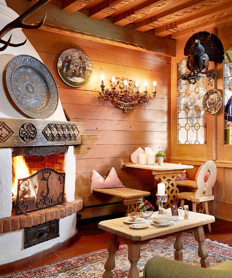 70 individuell gestaltete Zimmer & Suiten. Restaurant mit sechs verschiedenen Stuben. Haubenrestaurant Hubertus Stube . Lounge-Bar mit offenem Kamin.