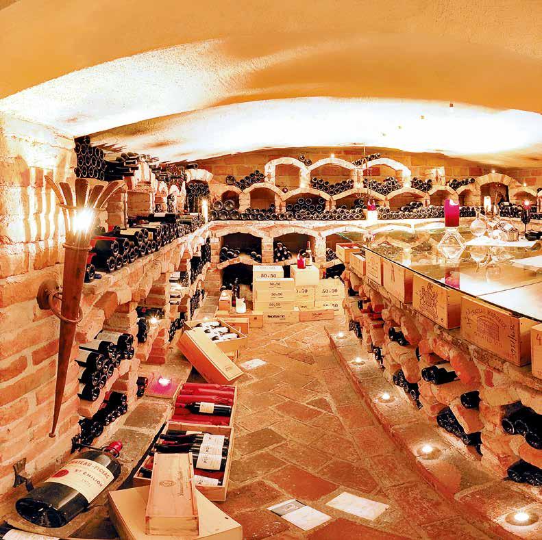 Weinkeller mit 20.000 Flaschen. Fondue-Gondel auf der Panoramaterrasse.