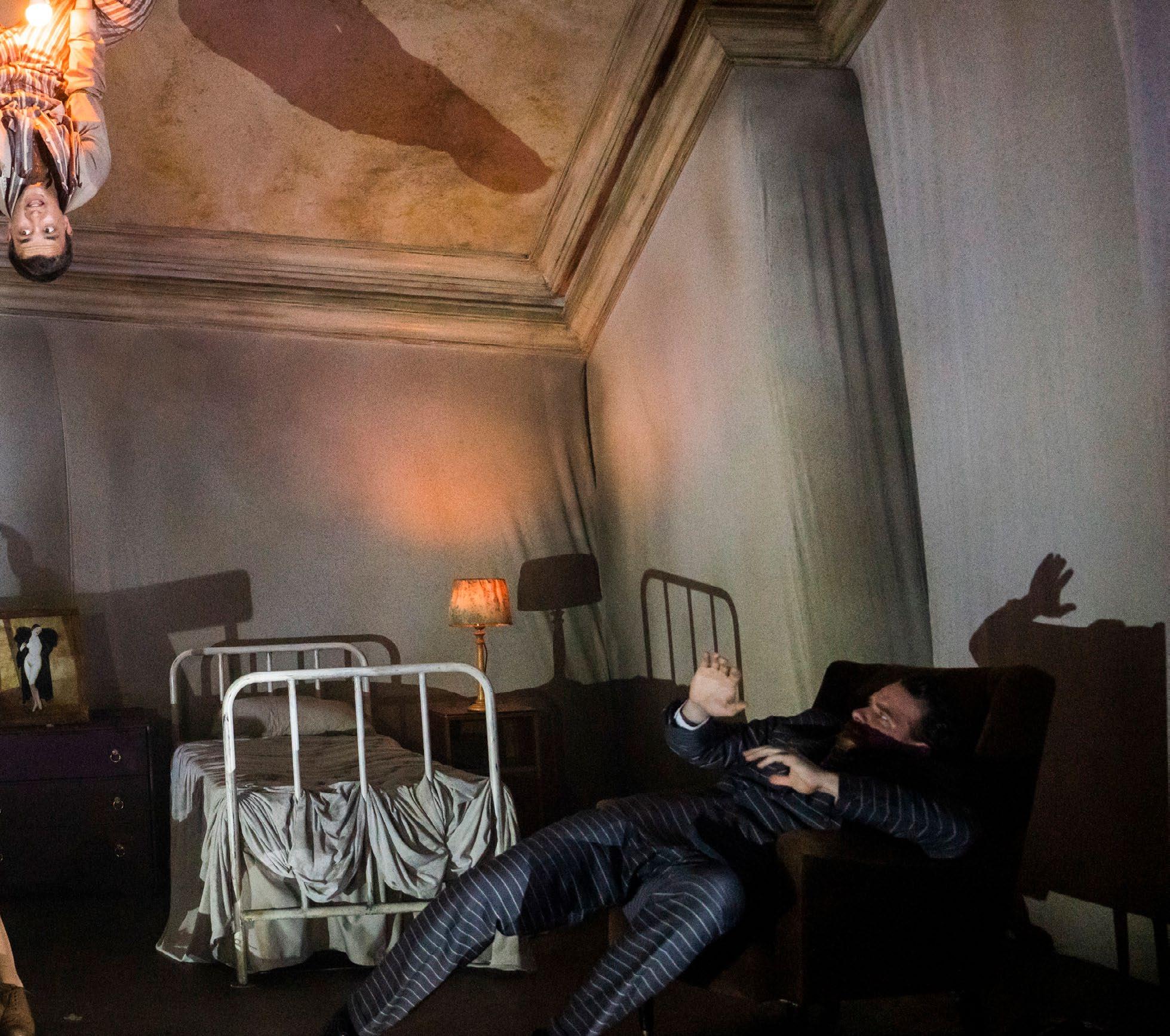 a chilling effect, presenting him as a dark, mysterious man, controlling the Samsa family like a puppeteer. Like many Frantic Assembly productions, the walls themselves move, mirroring Gregor’s physical and mental state: as they twist and turn, so does he.