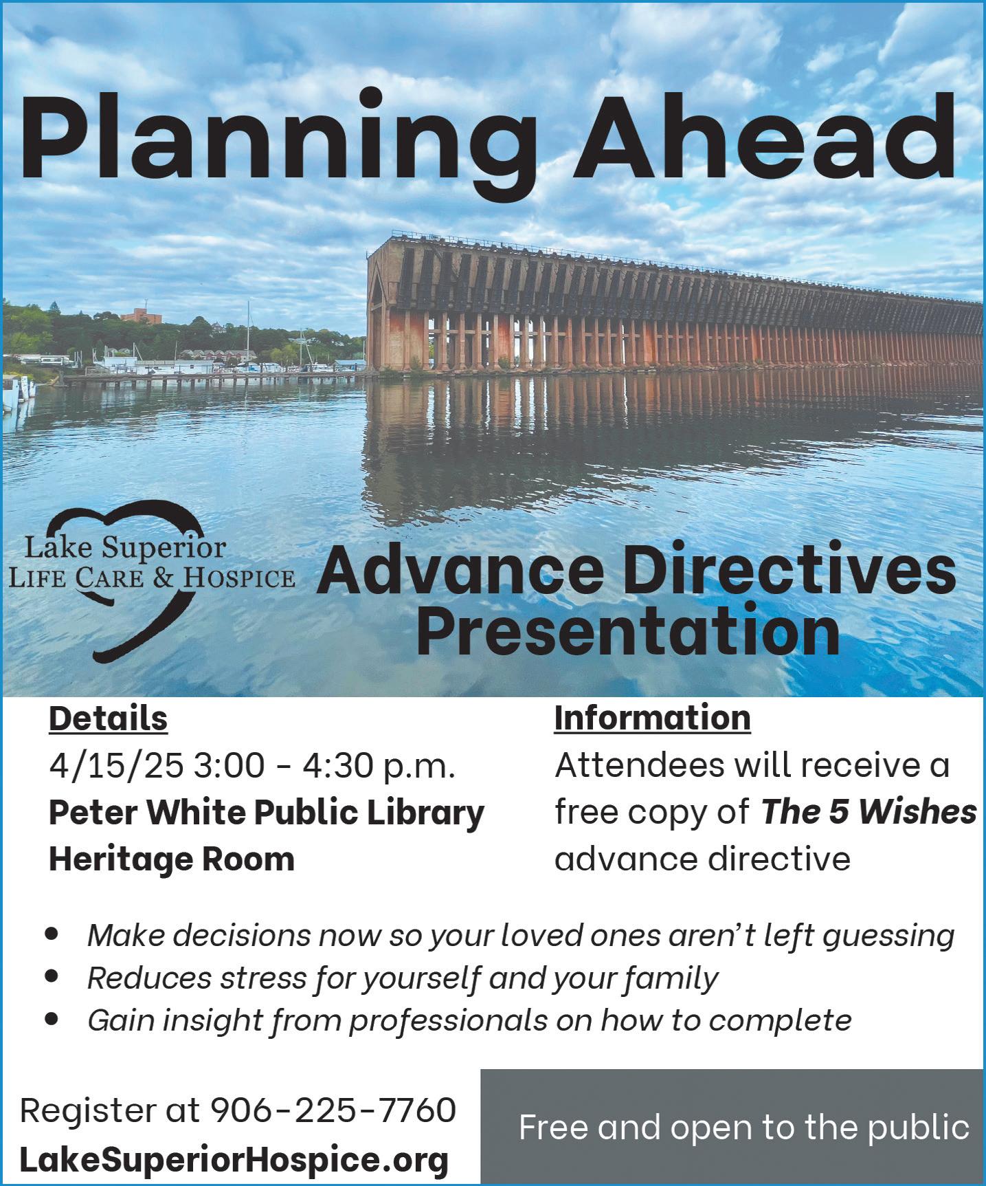 For information, visit the Lake Superior Life Care and Hospice Facebook page or lakesuperiorhospice.org.