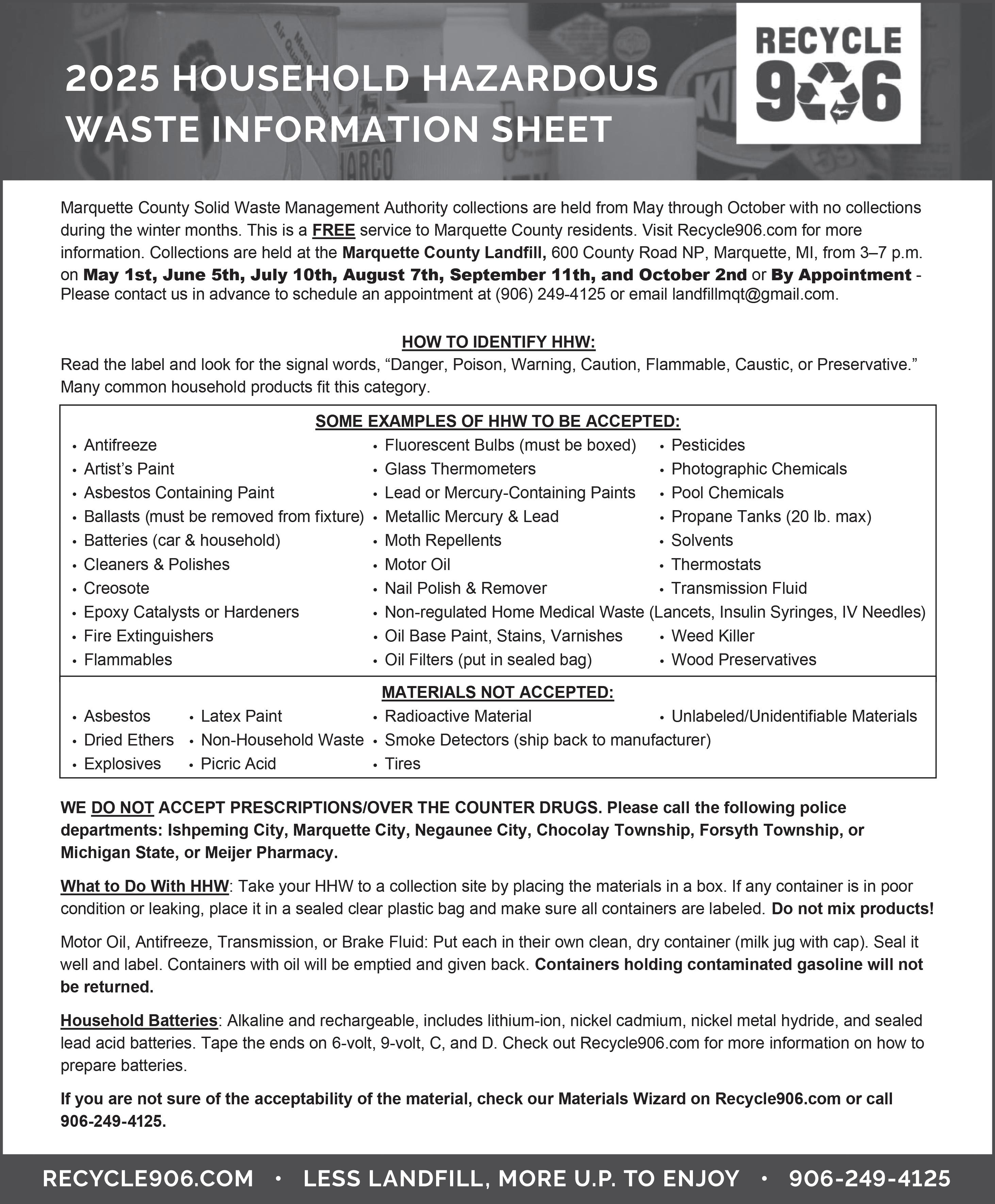 For information, visit the ACRES Facebook page or call the MSPL at 906-387-2125.
