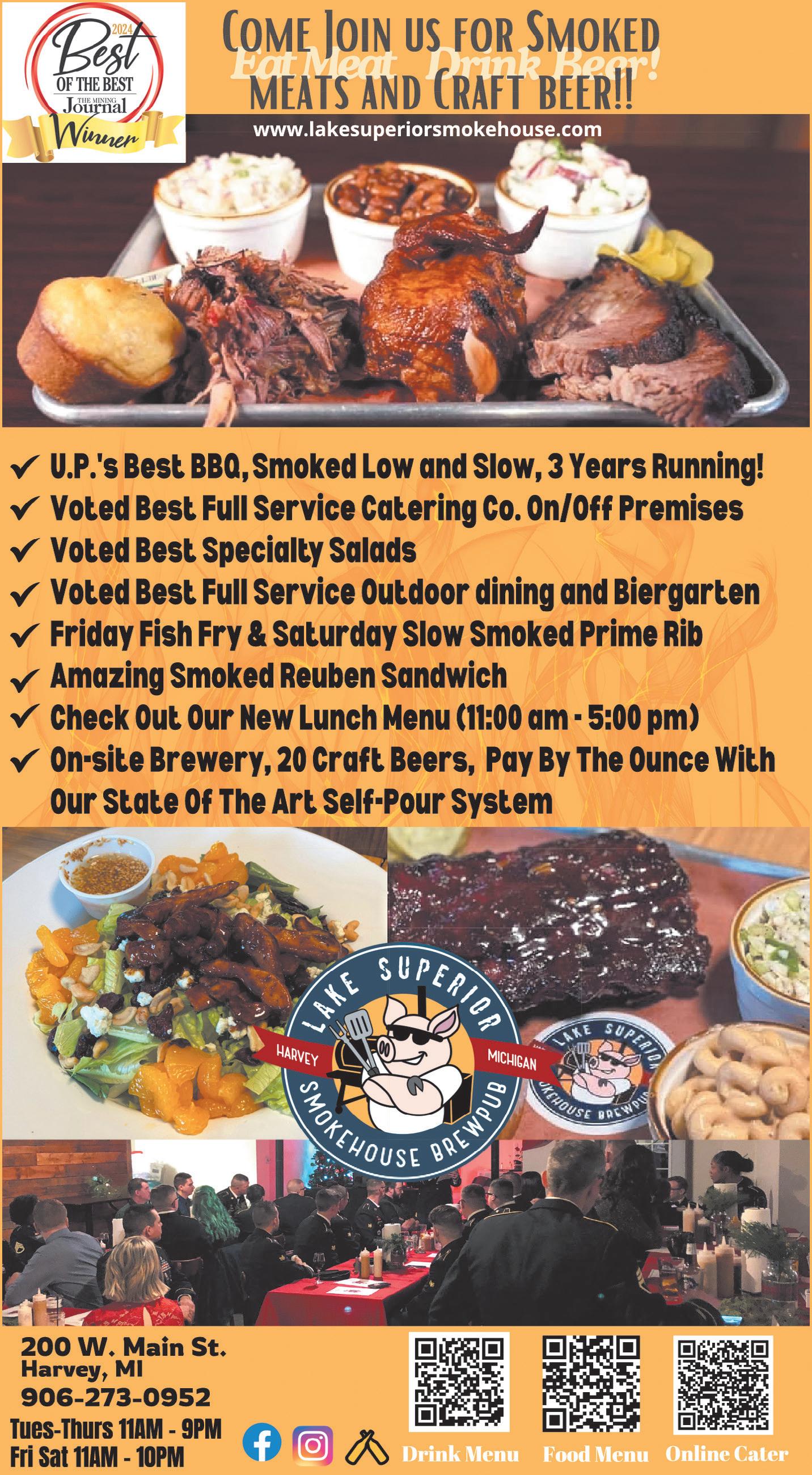 • NCLL: Brunch at Jeffrey’s. Attendees can enjoy food and conversation in the newly remodeled restaurant. 10 a.m. Jeffrey’s Restaurant, 300 S. McClellan Ave. 906-458-5408 or csteinha@nmu.edu.