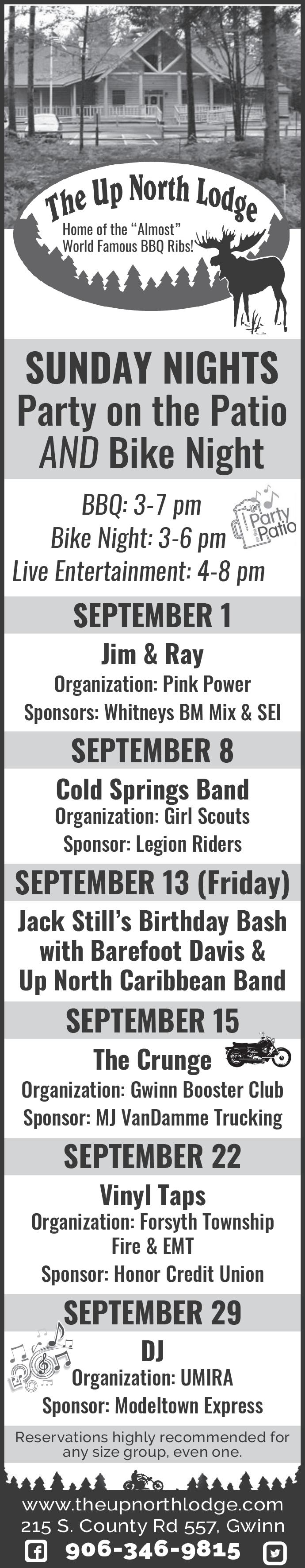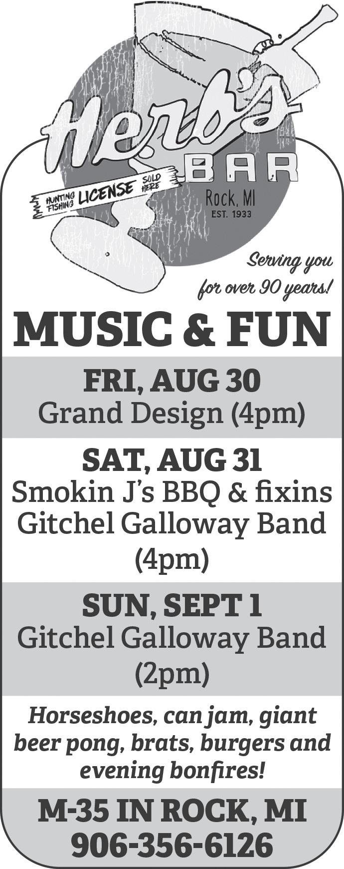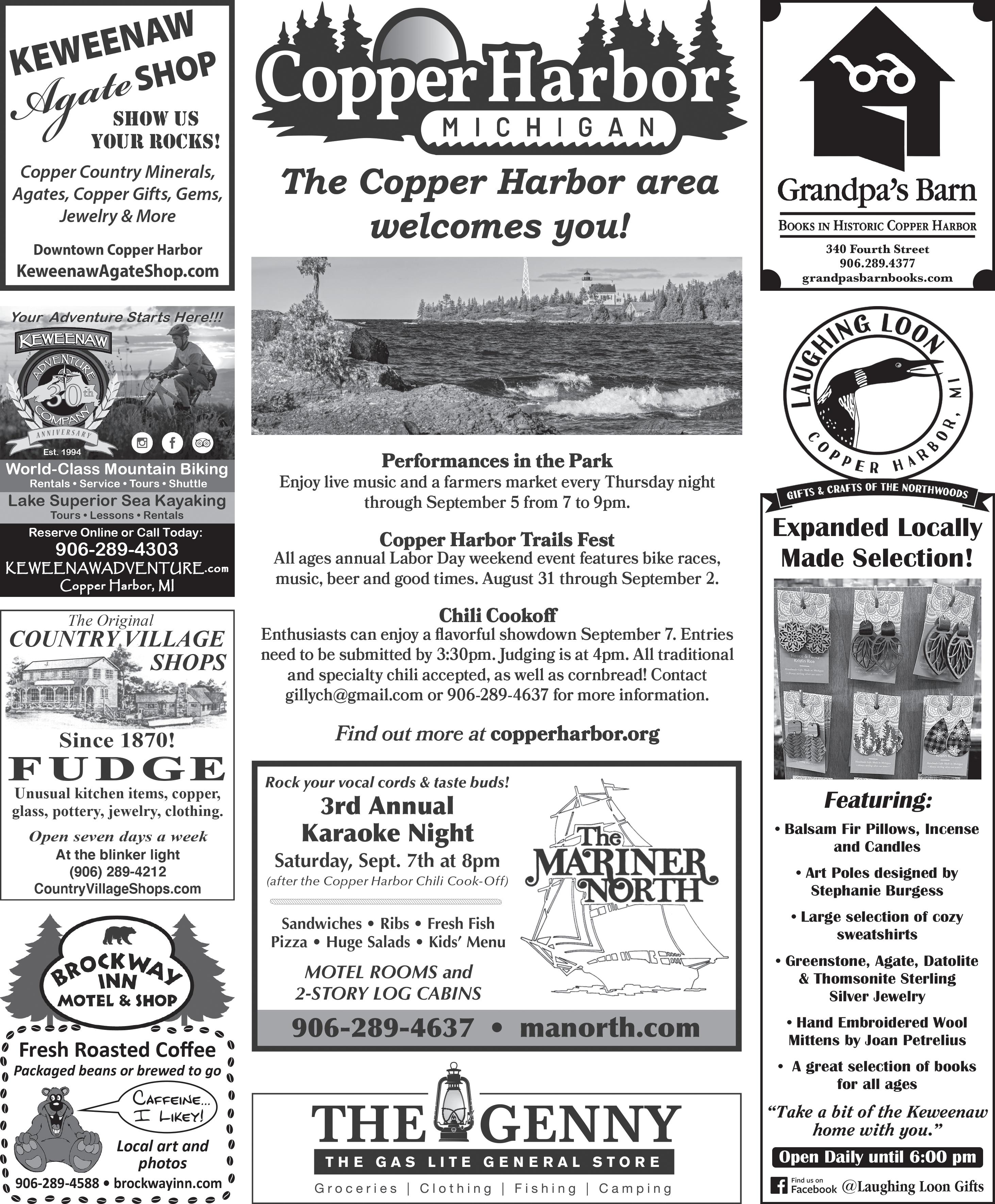 • Fall Fest. This family-friendly event will include a special Farmer’s Market, pony rides, an inflatable obstacle course, hay rides, music, games and more. Downtown and local businesses will also hold different on-site activities. Hosted by the Negaunee DDA. Noon to 5 p.m.
