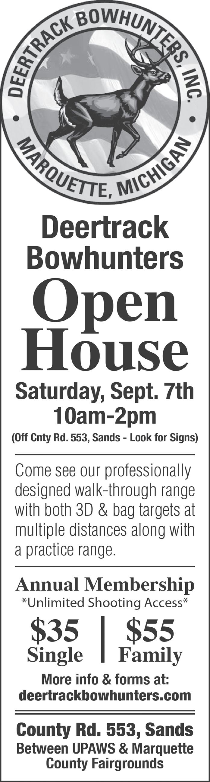 The range is located off County Road 553 between UPAWS and the Marquette County Fairgrounds. Signs will be posted. For information, visit deertrackbowhunters.com.
