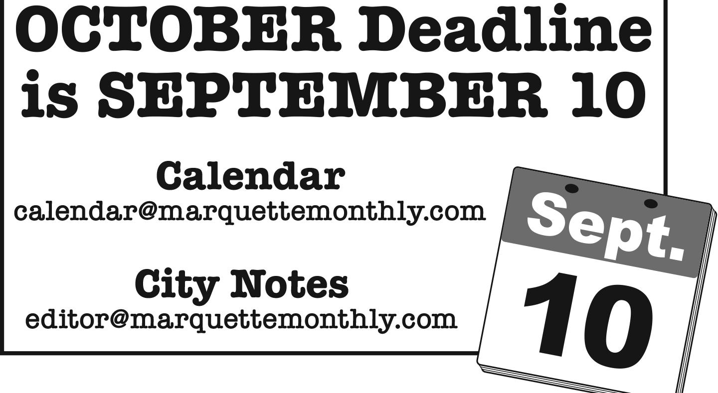 For information, contact the City of Marquette Arts and Culture Center at 906-228-0472.