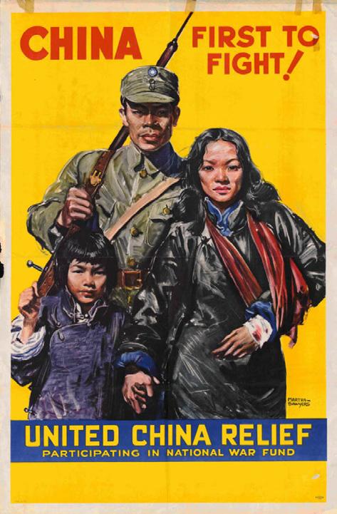 Although many believe the Second World War began with the invasion of Poland in 1939, some scholars argue that the war began with the Second Sino-Japanese War in 1937 when Japan invaded China. United China Relief was a fundraising organization established in March 1941 in the United States to raise money to help China with medical, educational, and economic needs. The organization was part of the National War Fund, which was a coalition of relief groups who banded together to raise money for various relief projects. United China Relief coordinated several smaller organizations focused on fundraising for China with a goal to raise $5,000,000 by July 31, 1941. United China Relief continued to raise funds for China throughout the war. The badge on the soldier’s hat is the symbol of the Kuomintang, the Chinese Nationalist Party, one of the main political factions within China during the war.