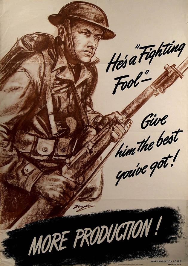 This poster highlights one of the major ways that average citizens could contribute to the war effort during World War II. Rationing was implemented across the nation so that more materials could be used to equip and supply the troops. War also disrupted international trade which caused further limitations. Everything from butter to gas was rationed and Americans were given ration books which dictated how much of each good they could purchase every week. Posters like this one encouraged Americans to follow the rationing program in order to help American soldiers in the field.
