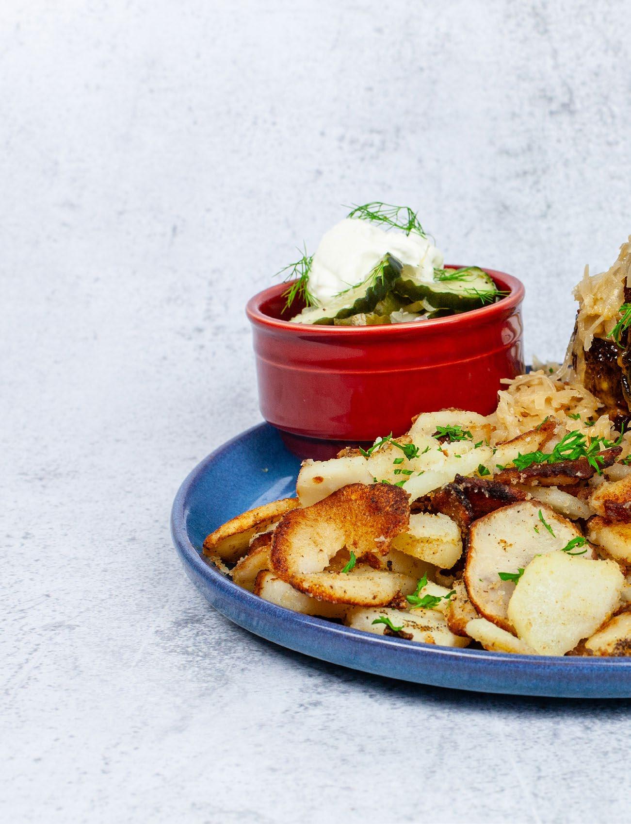 PREP | Melt butter in a pan. Add oil. Sauté potatoes. Season with salt and pepper.
