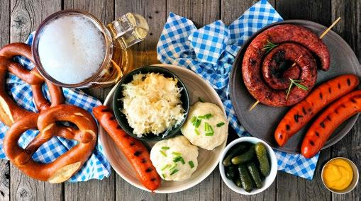 PREP | Cook and slice brats/sausages. Place onto platter with mini chicken schnitzels, ham, heated pretzel sticks and dipping sauces.