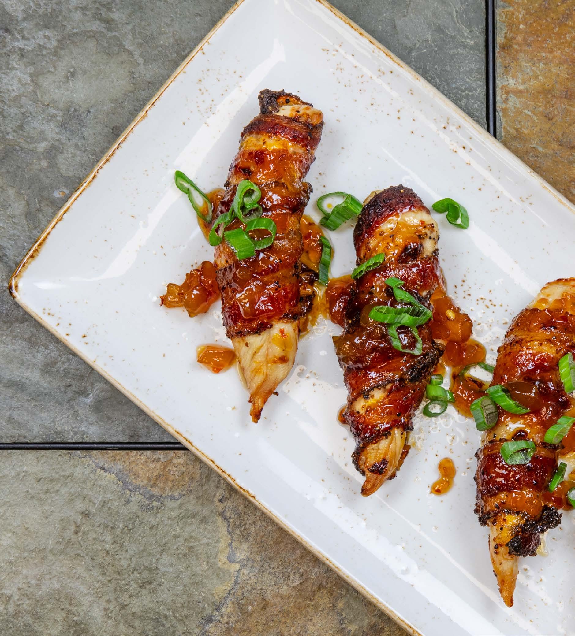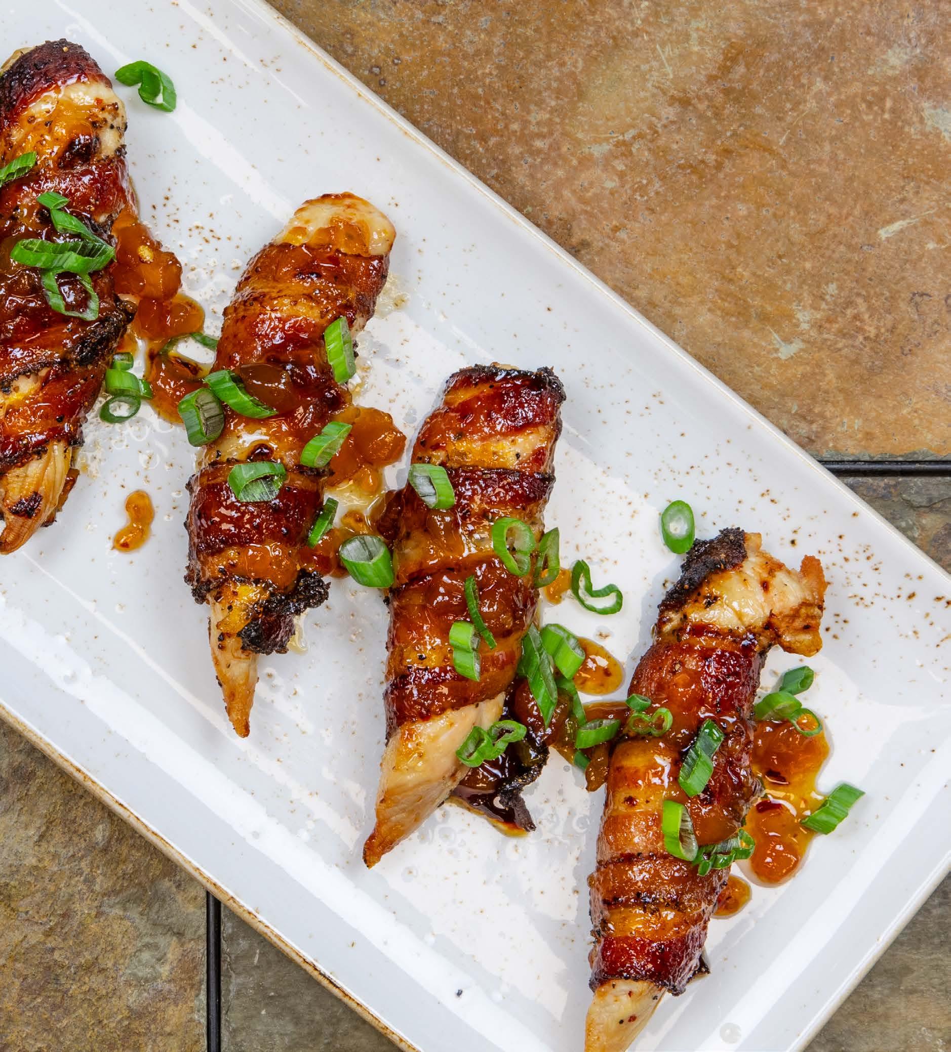 PREP | Preheat oven to 375°F. Lightly season chicken tenders with salt and pepper. Wrap one piece of bacon around each tender. Cook in oven, brushing with sauce during last 5 minutes of cooking. Cook until internal temperature of chicken is 165°F.