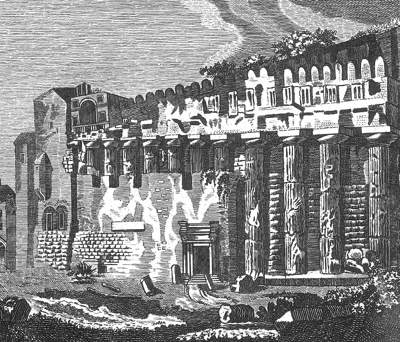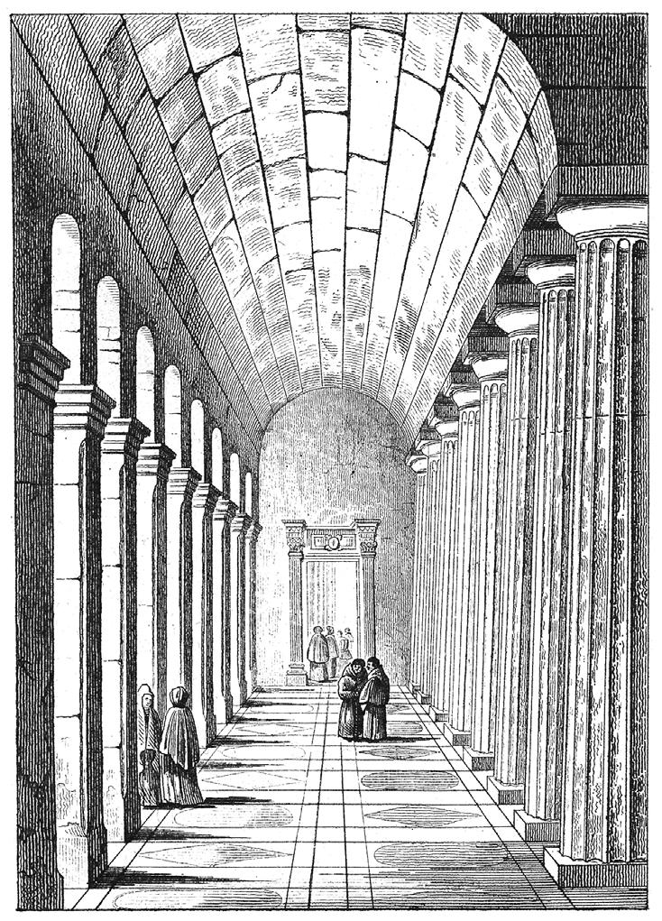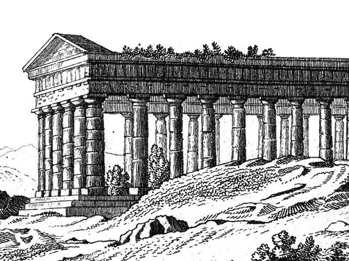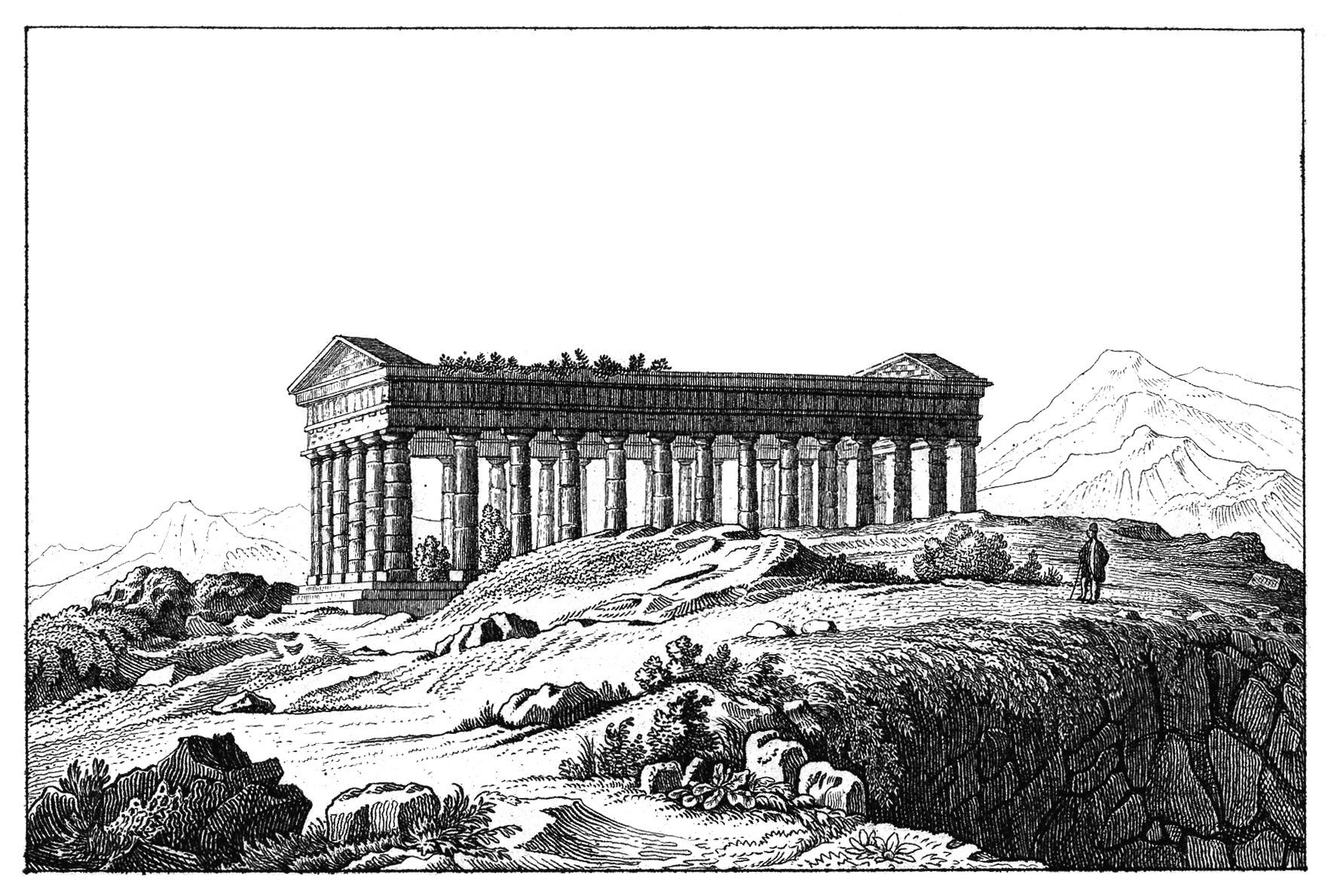 Illustration: Syracuse, the Duomo, steel engraving c. 1850.