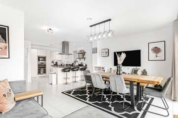 A semi-detached home with a modern open-plan kitchen, master suite with an en suite bathroom and walk-in wardrobe, a utility room, cloakroom, integrated double garage and landscaped garden which is accessed via the kitchen and side entrance.