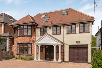 A detached home in need of modernisation with three reception rooms, garage, off-street parking, attractive front gardens and West-facing rear 140ft. mature garden backing onto Queen’s Wood.