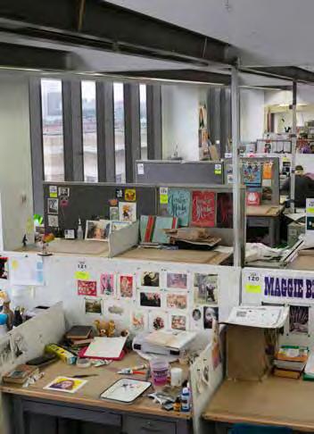 Boasts individual workspace for juniors and seniors, a surface design studio, two weaving studios, a dye kitchen, a darkroom, and more
