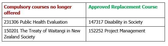 The paper called, The Treaty of Waitangi in New Zealand Society, has been retired as a compulsory paper for students majoring in Health Promotion through the School of Health Sciences. The class is still available as an elective.