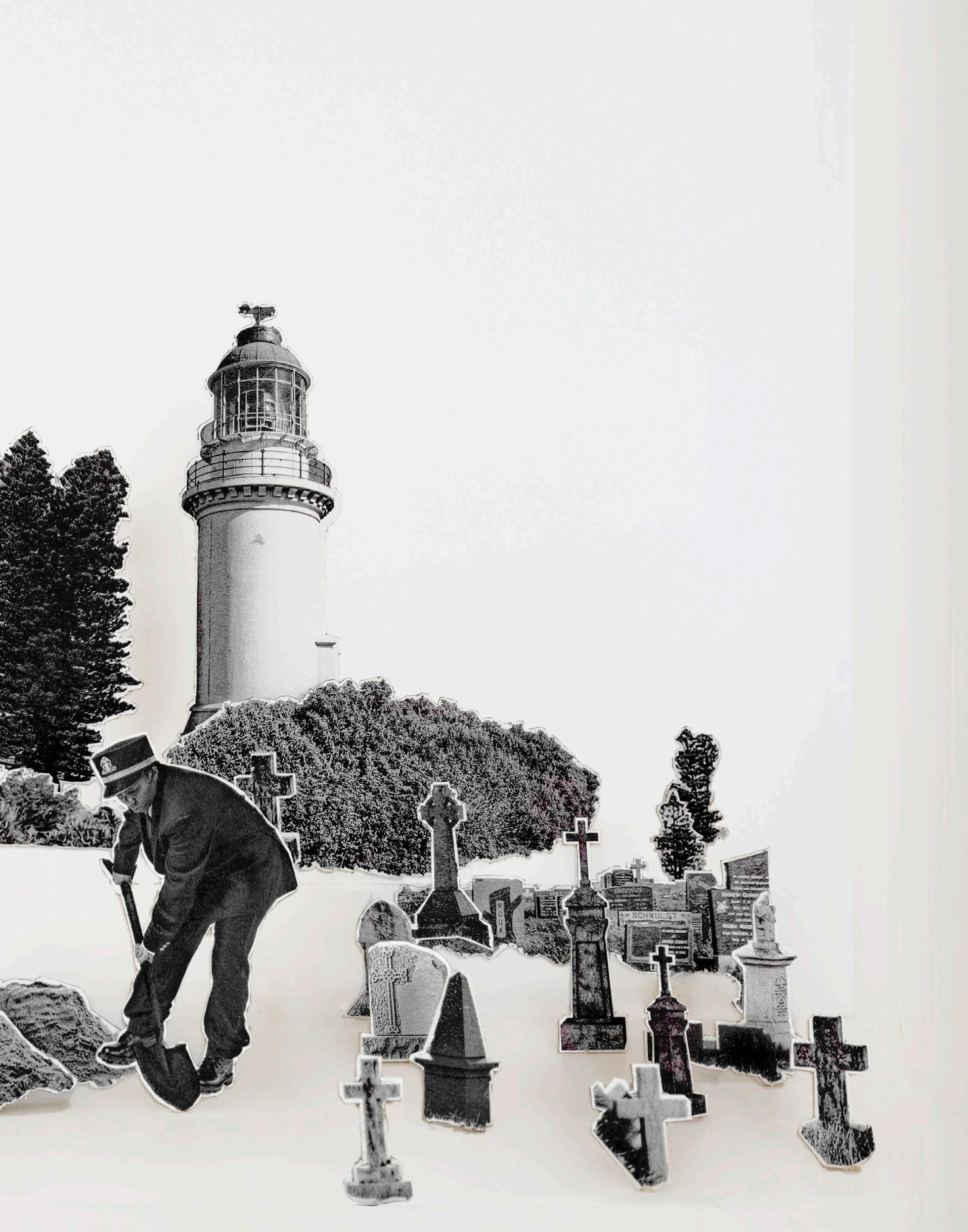 Kganye ripropone le storie poco conosciute e solitamente relegate alla narrativa di genere di centinaia di donne guardiane di fari del XIX e XX secolo. Tra queste spicca la vicenda di Ida Lewis, guardiana del faro di Lime Rock, raccontata da Lenore Skomal nel libro The Lighthouse Keeper’s Daughter (2010). Storia vuole che Lewis sia diventata famosa per avere portato a termine numerosi salvataggi di uomini nell’Oceano Atlantico che bagna le coste di Rhode Island, nel lontano1858. Inizialmente Kganye torna a mani vuote dal viaggio di ricerca che aveva intrapreso: praticamente tutti i fari sono ormai automatizzati; quello del guardiano del faro è un mestiere destinato a scomparire. L’artista, tuttavia, non rinuncia a ideare nuovi allestimenti scenici e nuove storie integrandole a quelle tramandate dalla tradizione orale per riportare in vita queste figure perdute. Da qualche anno a questa parte l’artista porta avanti una instancabile ricerca di memorie collettive, al fine di riscoprire, per usare le sue stesse parole, “storie segnate da lunghi periodi di solitudine e isolamento, costellate da rocamboleschi salvataggi, da viaggi drammaticamente interrotti, da mari tempestosi e venti impetuosi, ma anche scandite dai compiti monotoni e ripetitivi che caratterizzano la vita del guardiano del faro – senza trascurare l’impatto che il rapido progresso tecnologico ha avuto su una forma di lavoro e di servizio pubblico già relativamente invisibile” 8 .