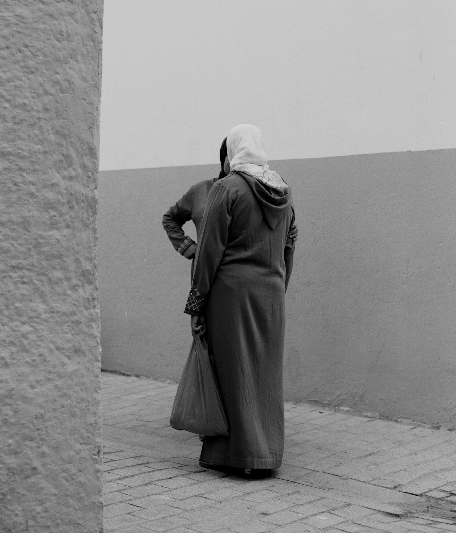 Di primo acchito il lavoro di Hicham Gardaf sembra l’esatto opposto di quello di Salvatore Vitale. In Praise of Slowness è una lode alla lentezza, l’altra faccia della medaglia. Se il video di Vitale mostra nelle scene iniziali un giovane automobilista stressato e in preda a una sorta di frenesia che, bloccato nel traffico, sembra sul punto di avere il suo primo infarto, nelle fotografie e nel video di Gardaf, al contrario, sperimentiamo la calma, un battito cardiaco normale, un ritmo di vita rilassato, in presenza di un carico di lavoro altrettanto impegnativo. Il progetto è ambientato a Tangeri, in Marocco. Il fulcro tematico è rappresentato dal contrasto tra la parte prospera, florida e in espansione della città, e il centro storico con il suo fascino antico, l’ombra fresca alla base delle mura che ne marcano il perimetro, il passo lento e riflessivo. Gardaf veicola questa contrapposizione attraverso una serie di fotografie e un film, riprendendo uomini, venditori ambulanti che ripetono più volte il loro richiamo, passano di casa in casa per portare la candeggina e infine raccolgono le bottiglie di plastica vuote. Un rituale che si ripete inalterato, nella calma ineluttabile di un’azione che