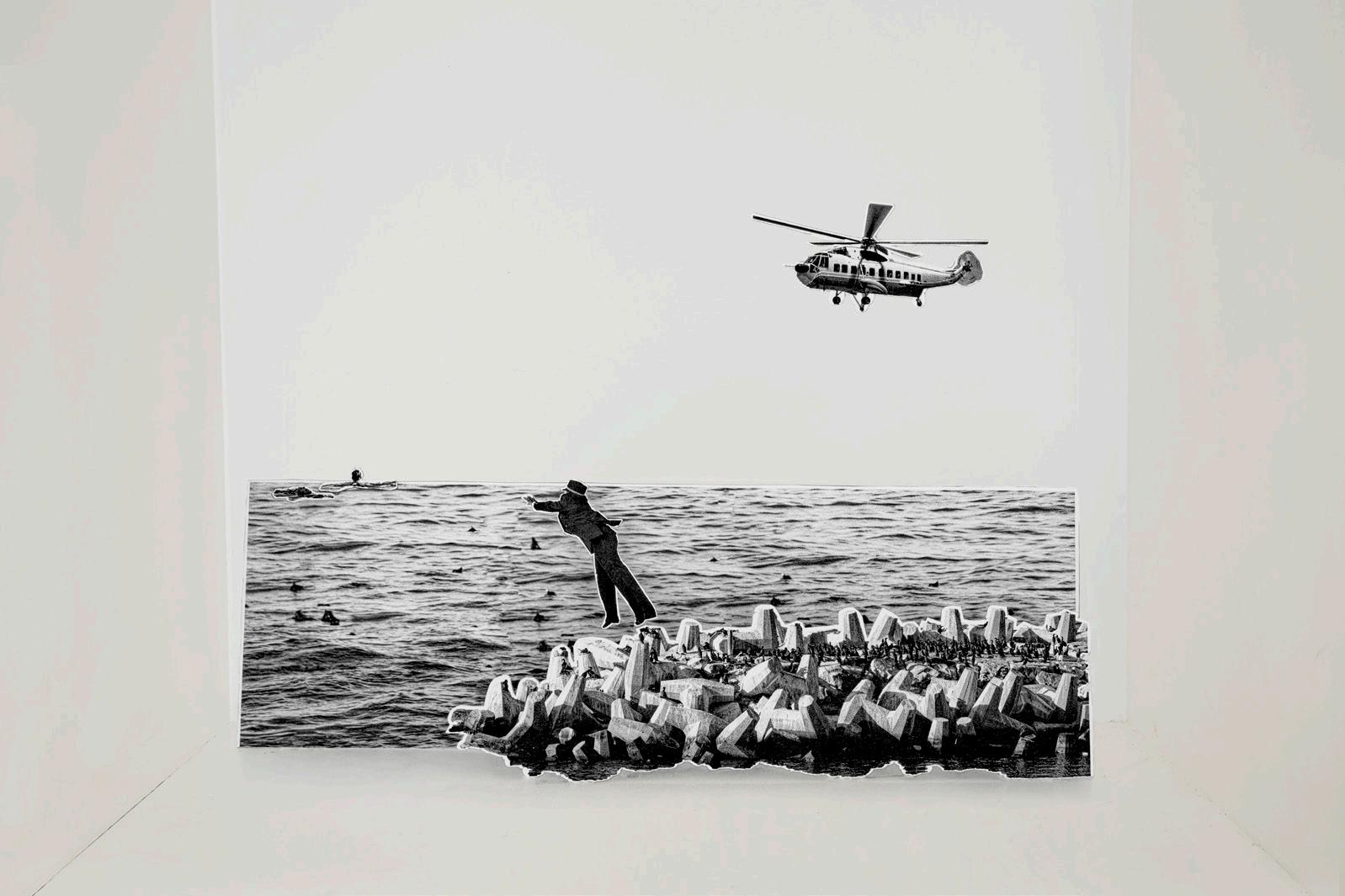the ancient trade of the street vendor, with its slow rhythms, in the frenetic context of a large city like Tangier (Gardaf); the evocation, in a blend of imagination and reality, of a profession that has been lost, that of female lighthouse keepers in South Africa (Kganye); the new creative possibilities that seem to be claimed by AI software (Mavropoulou); and the exploitation—and imaginary revolt—of workers in the gig economy, as related to mining and to the idea of sabotaging the means of production (Vitale).
