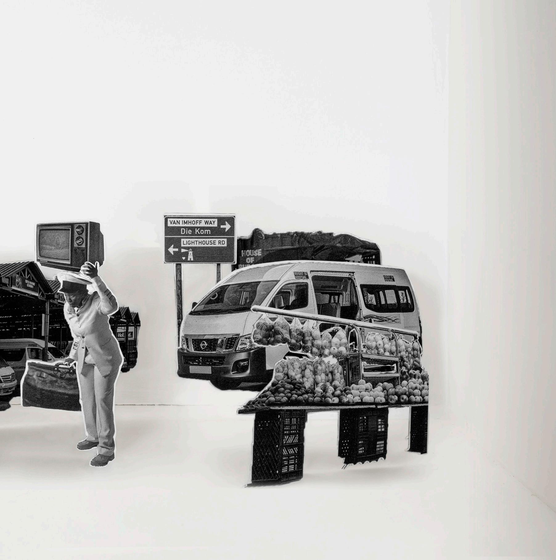 Al Qasimi cura all’interno dello spazio espositivo un allestimento degli universi che ha fotografato come se andasse a comporre un frammento di pittura murale urbana, evocando le medesime sovrapposizioni, le medesime codificazioni personali e culturali. Autrice di un lavoro che non è solo fotografico, Lebohang Kganye propone narrazioni di grande effetto e profondità. In una sorta di teatro delle ombre cinesi, l’artista inscena momenti di vita sudafricana che hanno per protagonisti personaggi fotografati la cui sagoma viene ritagliata e applicata su cartoncino, le ambientazioni valorizzate da una sapiente illuminazione teatrale. All’interno dello spazio espositivo, le sue installazioni hanno dimensioni variabili. Kganye ripropone, inscena, inventa e ricombina una serie di situazioni concrete ed eventi realmente accaduti giocando con la loro rielaborazione letteraria ed enfatizzandone alcuni tratti in un teatro delle immagini suggestivo, immaginifico e realistico al tempo stesso.