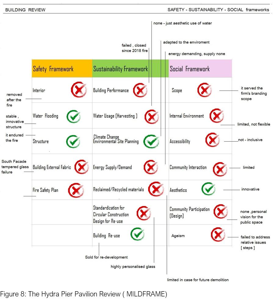 The Folly (Britannica,2024) existence of the Hydra Pier Pavilion, its closure due to the 2018 fire, and its subsequent redevelopment by local entrepreneurs mark a significant paradigm shift in building production. The project's strengths and shortcomings, when viewed in the context of current societal and technological challenges, offer a compelling narrative of architecture's evolving role in addressing safety, sustainability, and environmental issues. The ancient Greek doctrine, which demands the realization of virtue through beauty and righteousness, resonates in this context. 'Beauty is not enough unless it is justified by effective reasoning.'