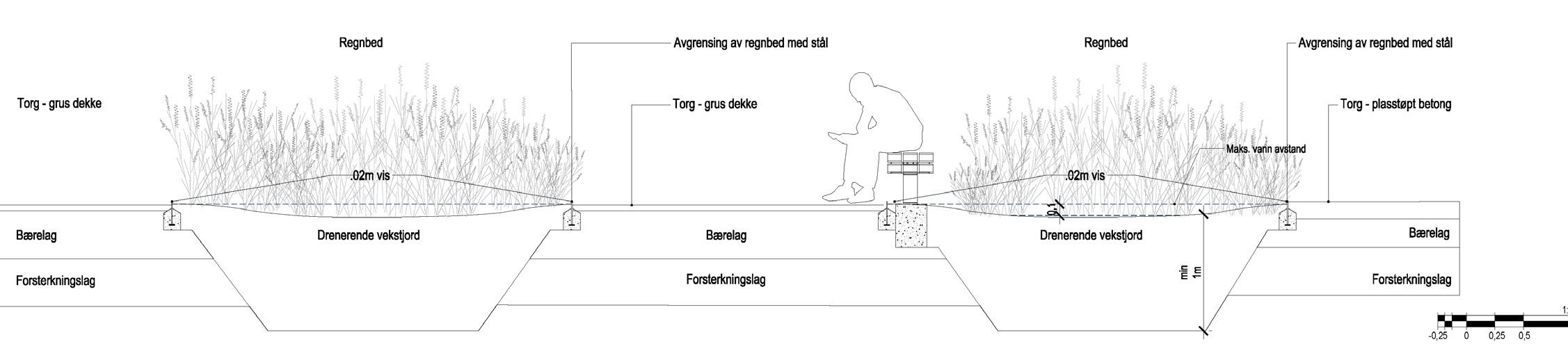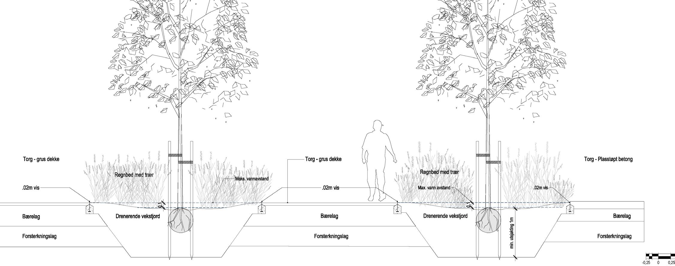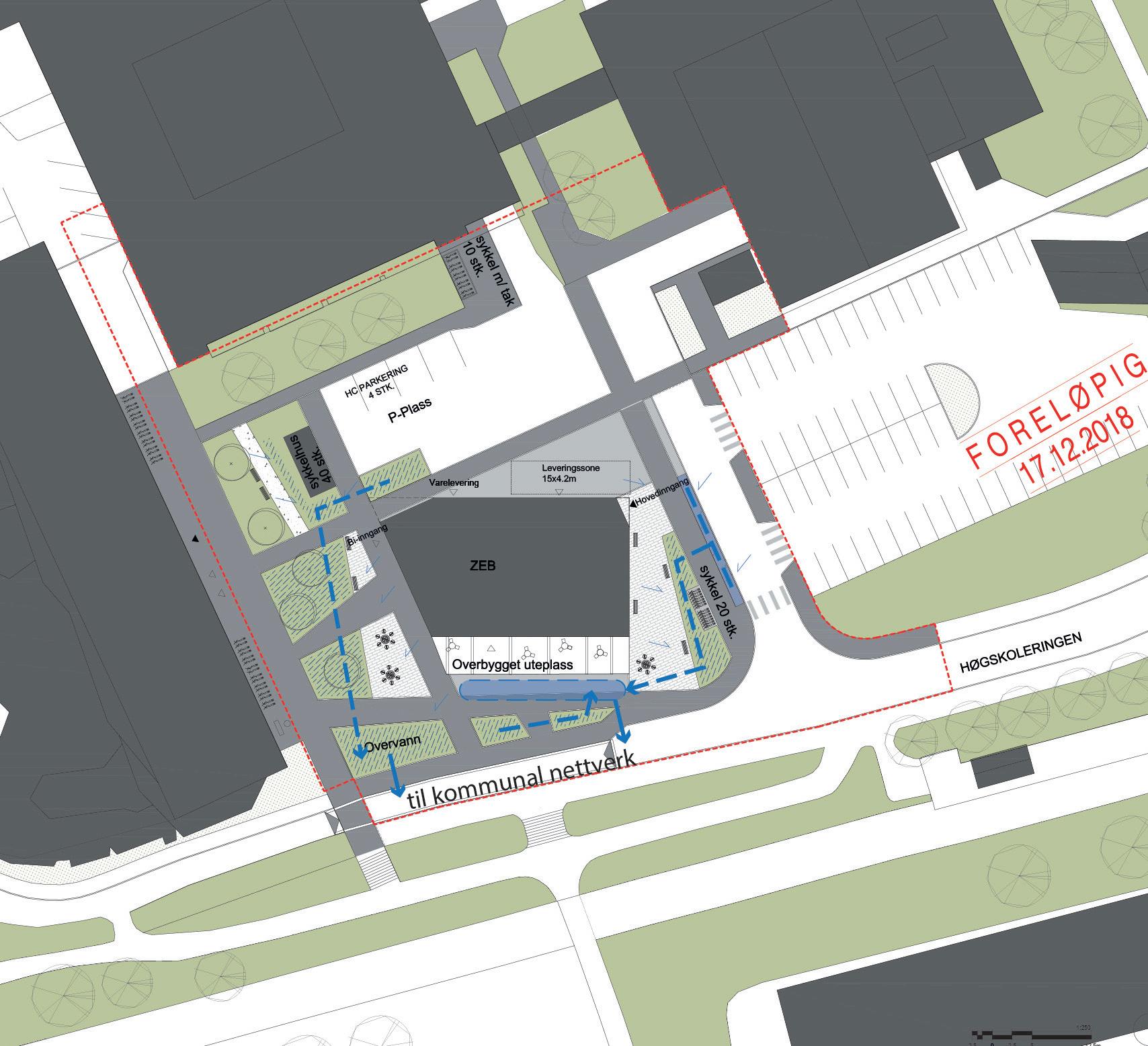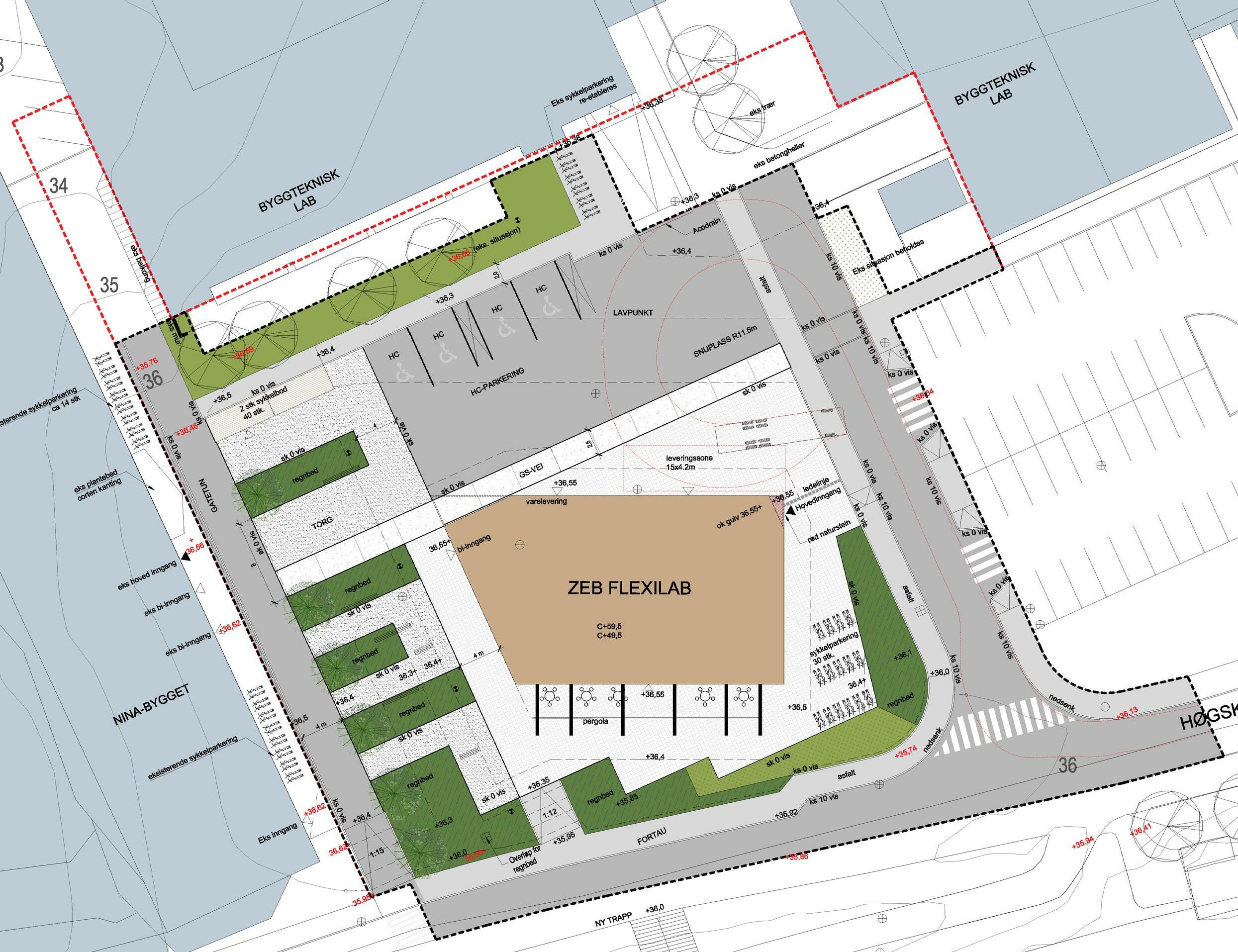 The ZEB Flexilab is a research facility and living laboratory on the campus of Trondheim Univerisity, part of a larger series of low-emission projects around Norway. I worked in parallel with planners during the early phases on site logistics and zoning guidelines for defining site qualities, and continued further with the landscape design and drawings through to principle detail drawings in coordination with LINK architects in the Trondheim office. Stormwater management was an important aspect of the design, both for research purposes and with ambitious targets to minimize the flow of water from the site into the municipal sewer network. I worked alongside engineers to develop simple yet functional designs at lower costs by using open stormwater designs and effective material selection.